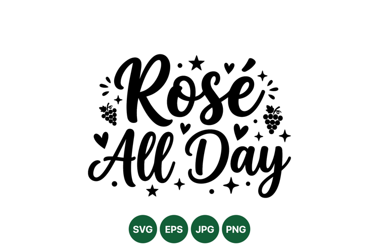 Svg Cut File Printable Wall Art Rosé All Day Hand Lettered Quote Wine Lover Graphic Calligraphy Design Party Decoration Art Summer Celebration Text Fun Phrase Design Digital Crafting Graphic