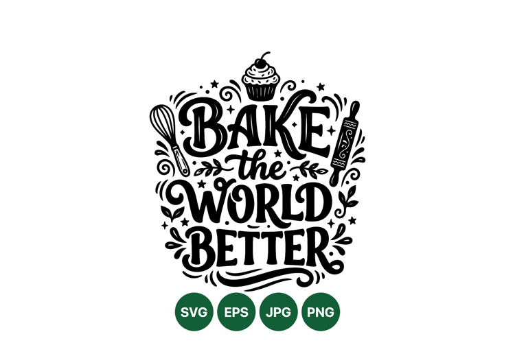 Hand Lettered Bake The World Better Cooking Design example image 1