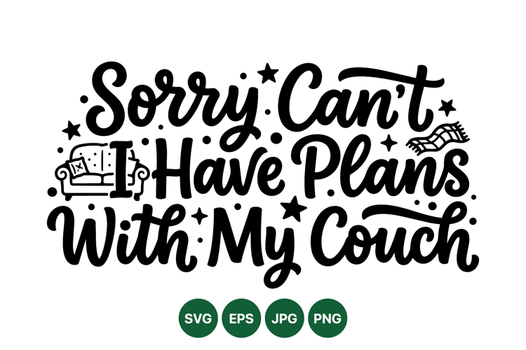 Hand Lettered Quote Cozy Home Decor Funny Quote Design Sorry Cant Plans Couch Relaxation Art Casual Living Room Funny Phrase Printable Relax Message Graphic Laid Back Style Comfy Sofa Illustration