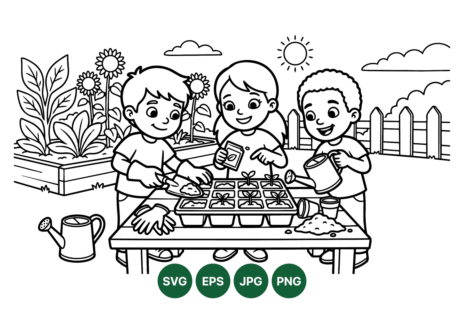 Similar Design Products to Hand Drawn Kids Gardening Clipart for Crafts