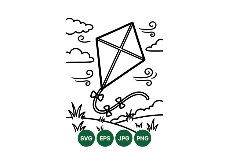 Black And White Design Minimalist Line Art Line Drawing Clipart Playful Kids Design Kite Flying Illustration Vector Outdoor Art Summer Activity Graphic Simple Svg Image Nature Theme Illustration Childhood Memory Graphic