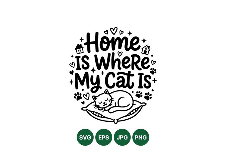 Home Decor Svg Cat Lover Design Cozy Home Decoration Sleeping Cat Clipart Cute Pet Illustration Hand Drawn Cat Art Animal Paw Graphics Pet Comfort Design Cat Phrase Graphic Relaxing Cat Drawing