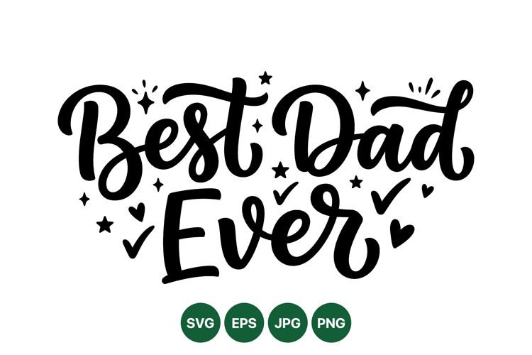 Handwritten phrase best dad ever decorated with stars check marks hearts in black script style suitable for fathers day cards gifts and celebration designs cheerful
