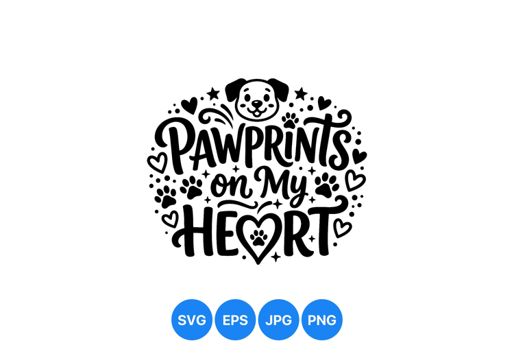 Similar Design Products to Hand Drawn Pawprints On My Heart SVG Design