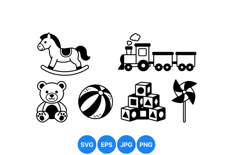 Teddy Bear Design Rocking Horse Icon Toy Train Illustration Black White Vector Classic Toy Clipart Kids Play Illustration Children Toy Graphics Play Ball Graphic Toy Block Artwork Pin Wheel Clipart