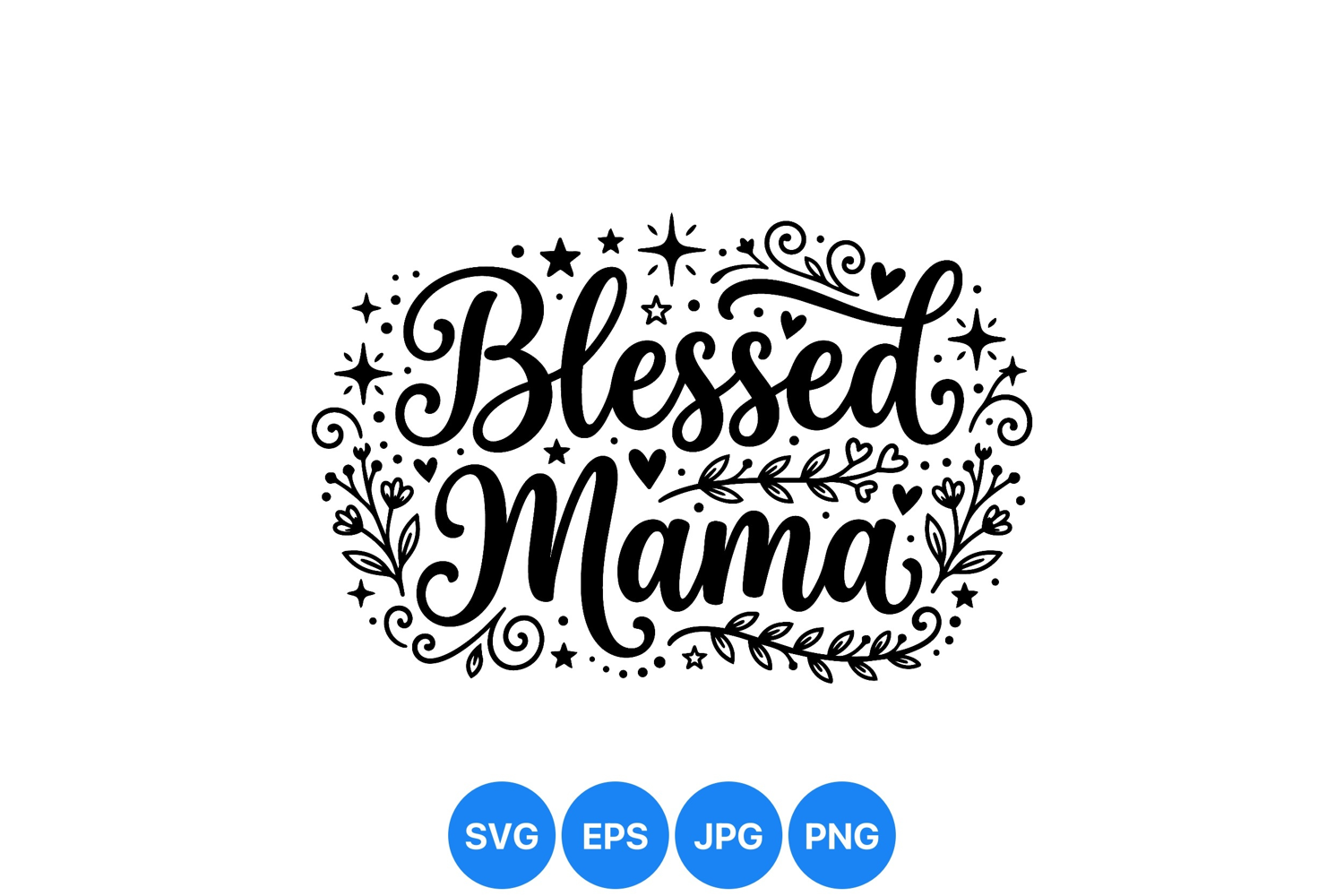 Hand Lettered Blessed Mama SVG Cut File Design example image 1
