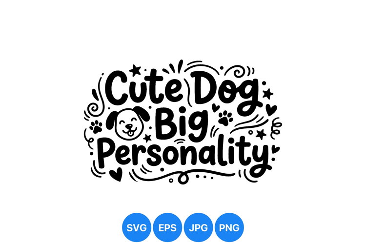 Cute Dog Illustration Hand Drawn Dog Art Dog Lover Graphics Happy Dog Clipart Pet Themed Vector Playful Pet Artwork Fun Animal Design Whimsical Dog Drawing Big Personality Quote Positive Dog Phrase