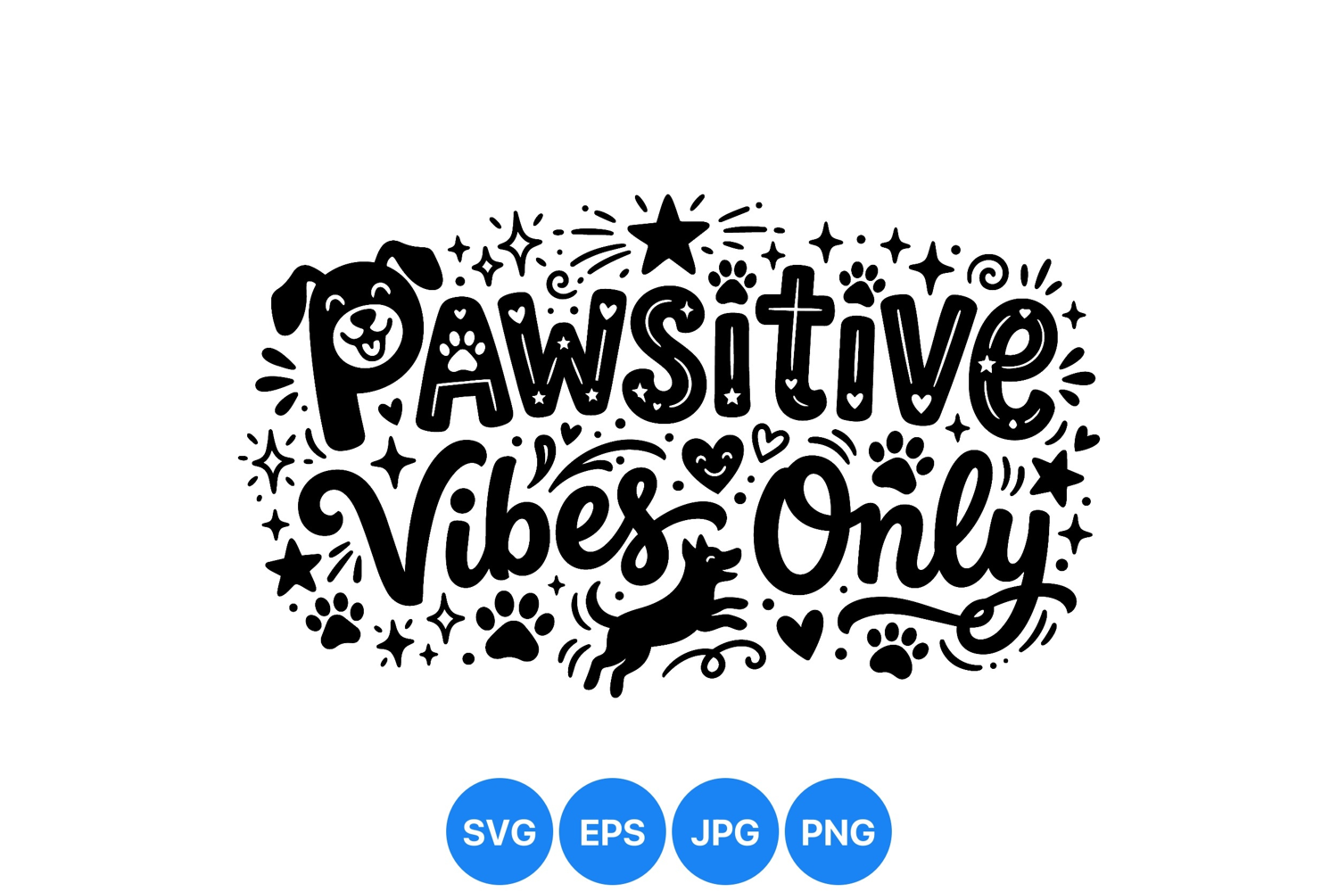 Cute Dog Illustration Dog Lover Graphic Dog Quote Design Paw Print Graphics Playful Animal Art Whimsical Pet Design Hand Lettered Dog Positive Dog Message Pawsitive Vibes Art Fun Typography Art