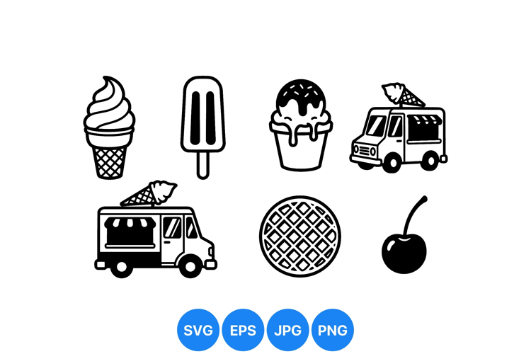 Black And White Ice Cream Icons For Printables example image 1