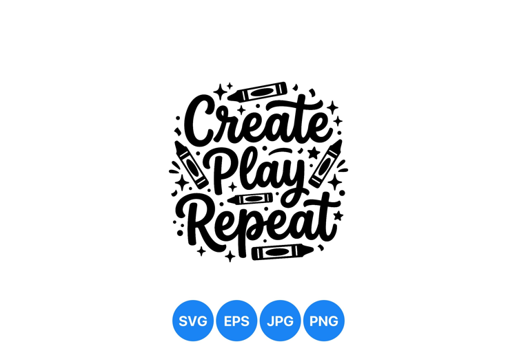 Hand Lettered Svg Digital Art Clipart Kids Crafting Svg Create Play Design Repeat Phrase Clipart Crayon Drawing Artwork Playful Quote Design Fun Children Phrase Creative Project Svg Coloring Activity Clipart