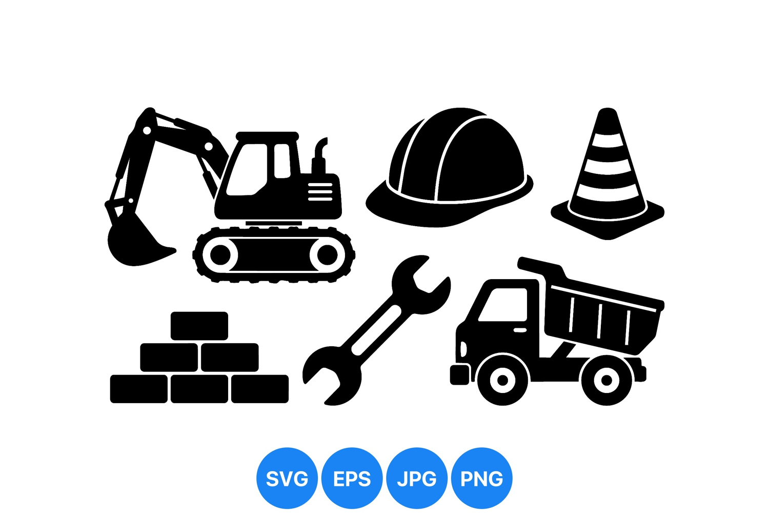 Construction Equipment Icons Safety Helmet Graphic Building Site Icons Heavy Machinery Graphic Excavator Machine Clipart Dumptruck Vehicle Design Wrench Tool Illustration Traffic Cone Drawing Brick Pile Vector Construction Worker Tools