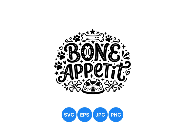 Cute Bone Appetit Dog Svg Illustration Design example image 1