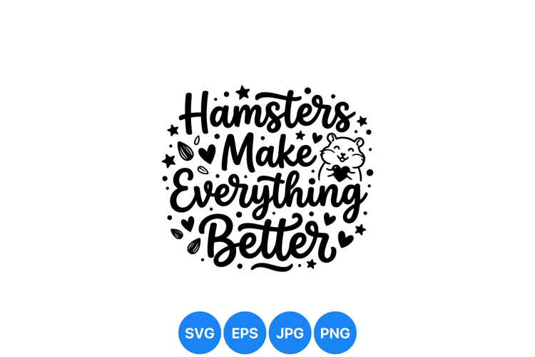 Hand Lettered Design Black White Clipart Cute Hamster Clipart Funny Pet Quote Animal Lover Art Vector Animal Drawing Playful Pet Graphic Adorable Pet Artwork Happy Hamster Illustration Loving Pet Typography