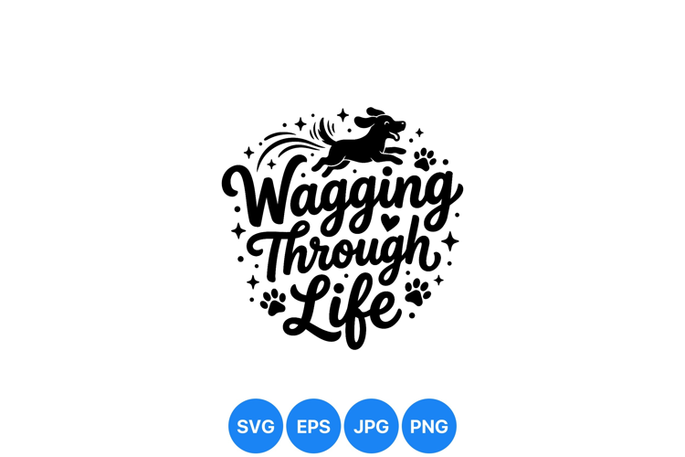 Wagging Through Life Dog Clipart Design
