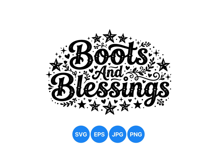Rustic Boots And Blessings Typography Design For Crafts example image 1
