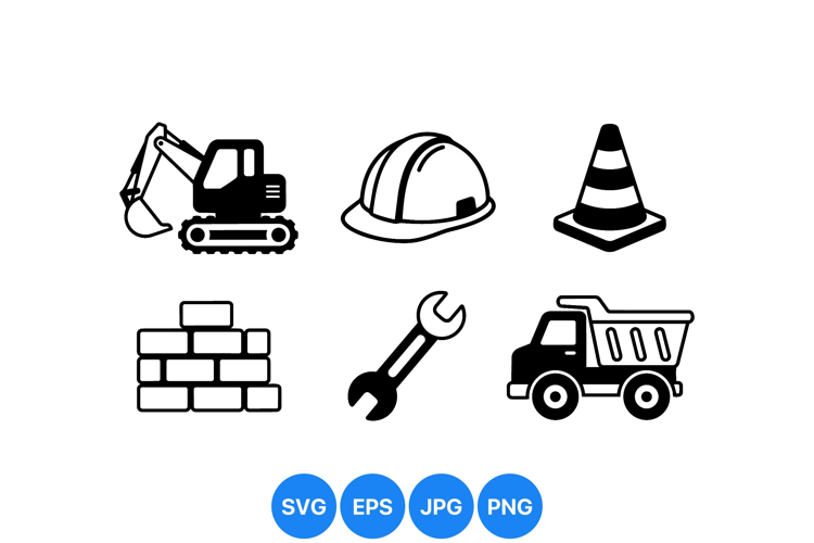 Construction Equipment Icon Dump Truck Vector Safety Helmet Illustration Traffic Cone Symbol Construction Vehicle Graphic Excavator Machine Icon Building Brick Image Repair Wrench Design Construction Site Icon Industrial Tool Graphic