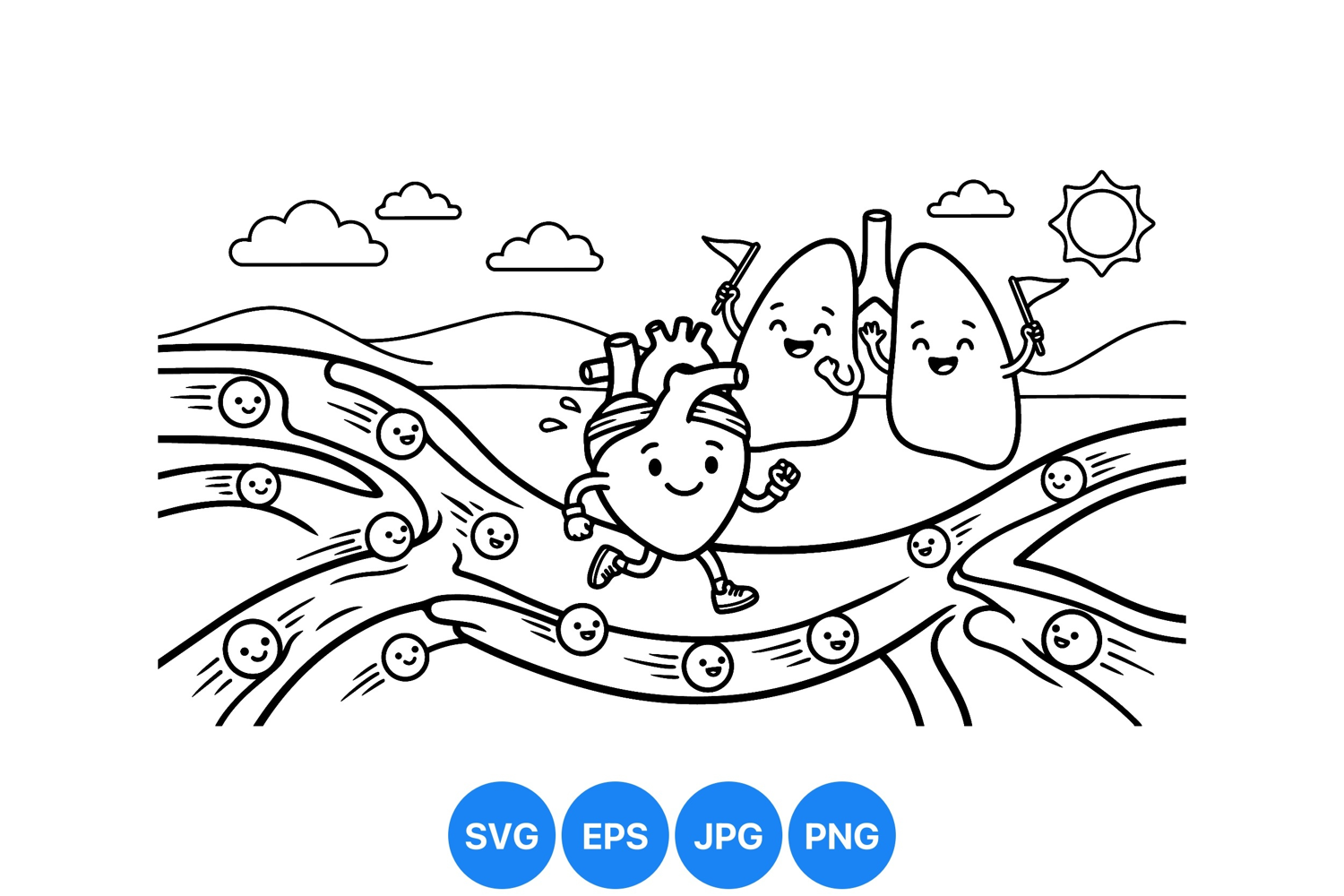 Cute Running Heart And Lungs Medical Illustration example image 1