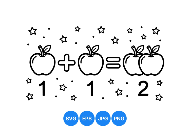Black And White Clipart Kids Learning Clipart Apple Math Illustration Addition Symbol Design Educational Math Art Children Counting Graphic Fruit Math Illustration Math Education Graphic Simple Number Drawing Early Learning Art