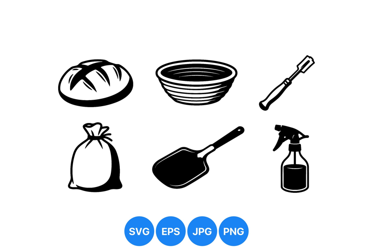 Spray Bottle Vector Baking Tools Graphics Black White Kitchen Bread Loaf Illustration Kitchen Vector Art Flour Sack Design Dough Scraper Clipart Artisan Baking Supplies Rustic Bakery Design Oven Baking Tools