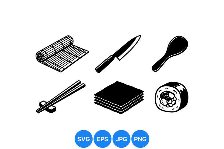 Kitchen Utensil Illustrations Digital Food Art Black Silhouette Graphics Minimalist Food Icons Restaurant Menu Icons Sushi Preparation Icons Japanese Cuisine Graphics Vector Cooking Design Culinary Tool Illustrations Meal Preparation Symbols