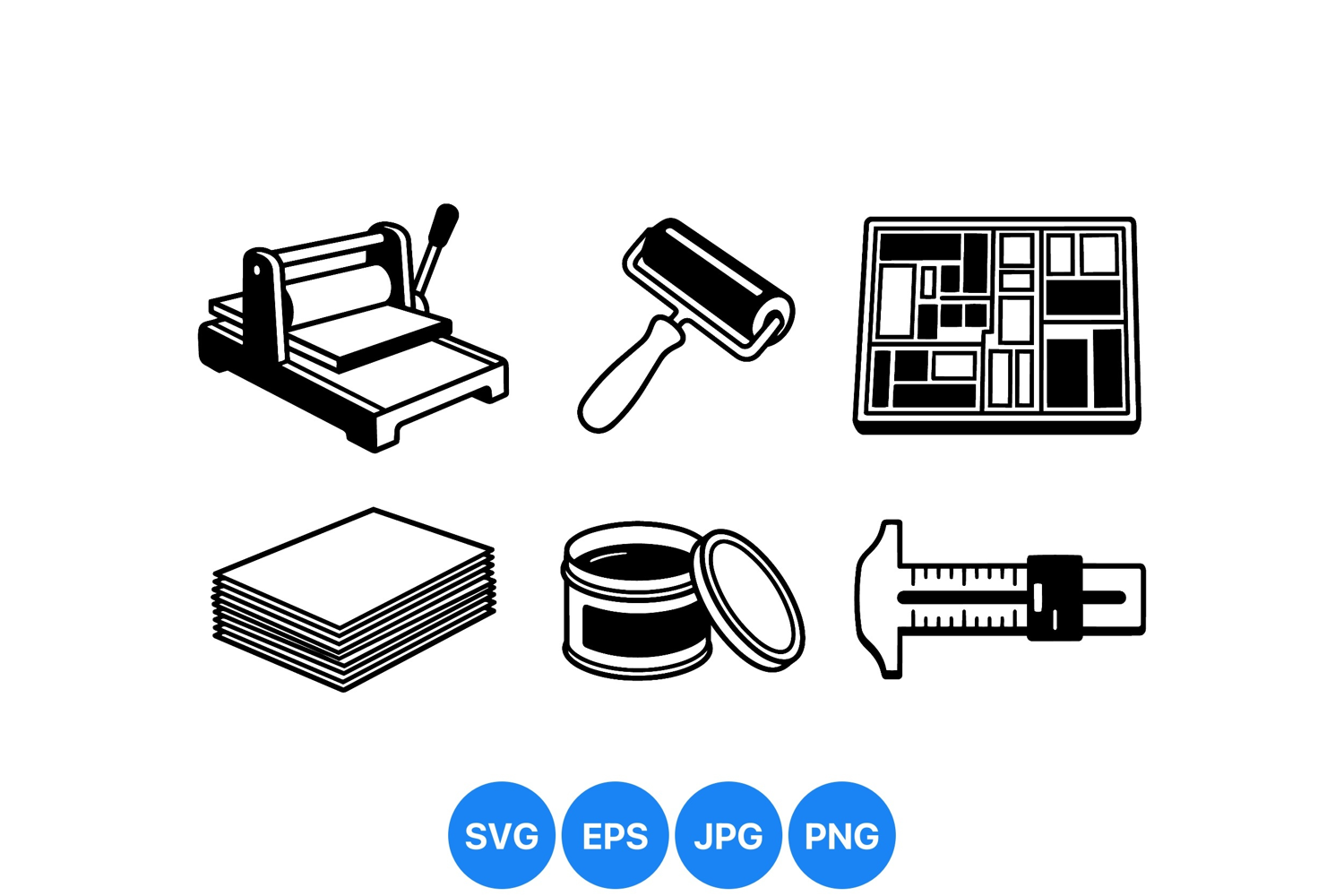 Black And White Clipart Vector Art Supplies Printmaking Tool Clipart Printing Press Graphics Ink Roller Illustration Paper Stack Design Craft Tool Drawing Print Block Icon Art Tool Vector Silhouette Art Graphics