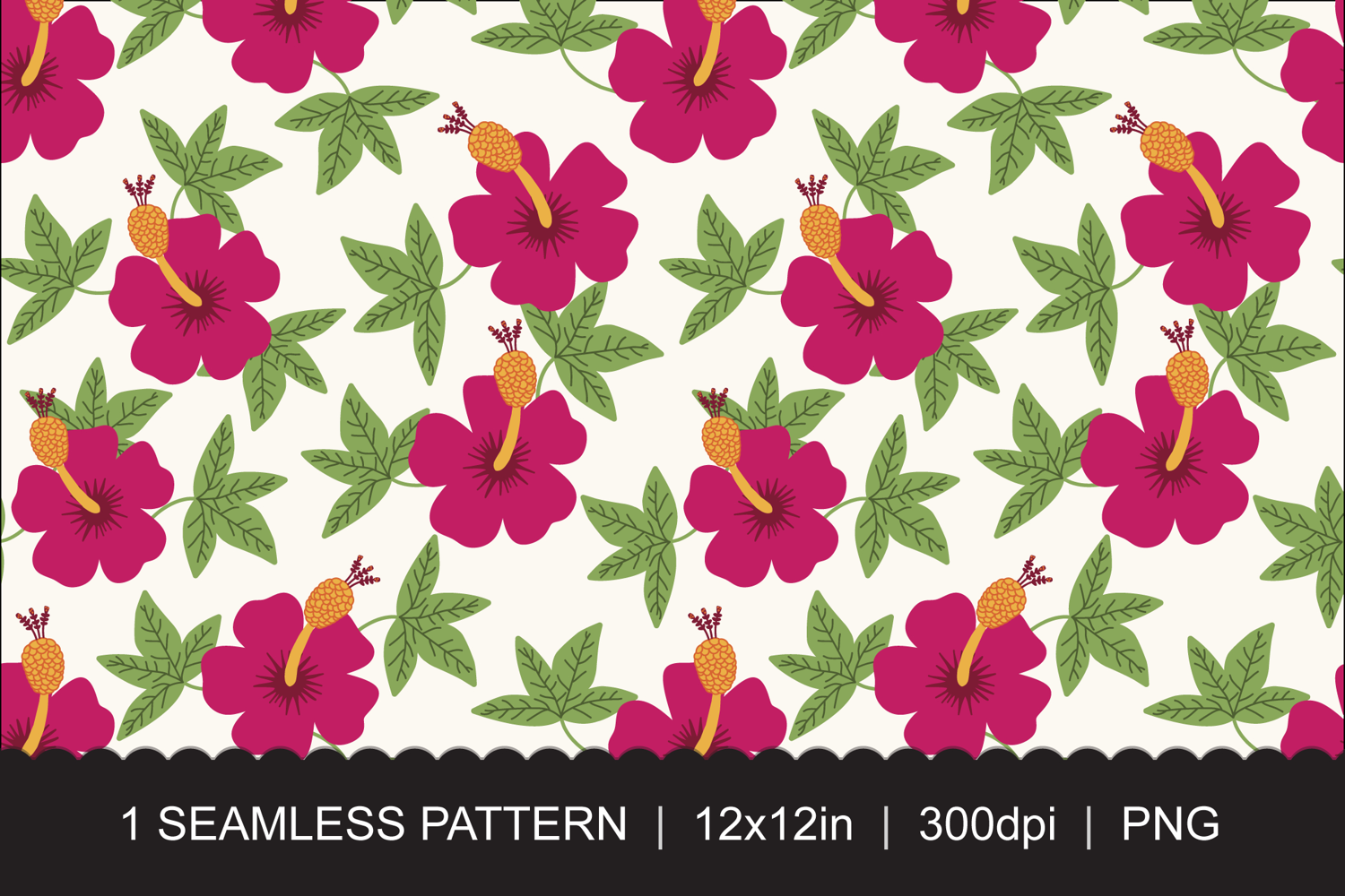 Seamless Tropical Hibiscus Pattern on Transparent Background