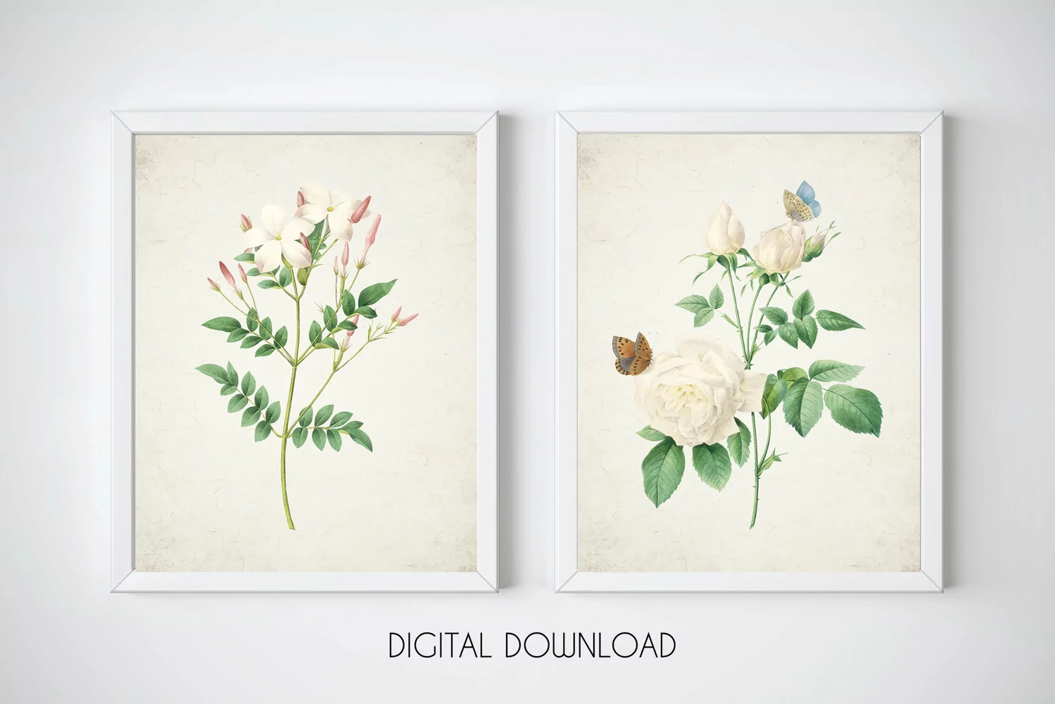 Vintage Flowers Downloads, Botanical Print Set of 2