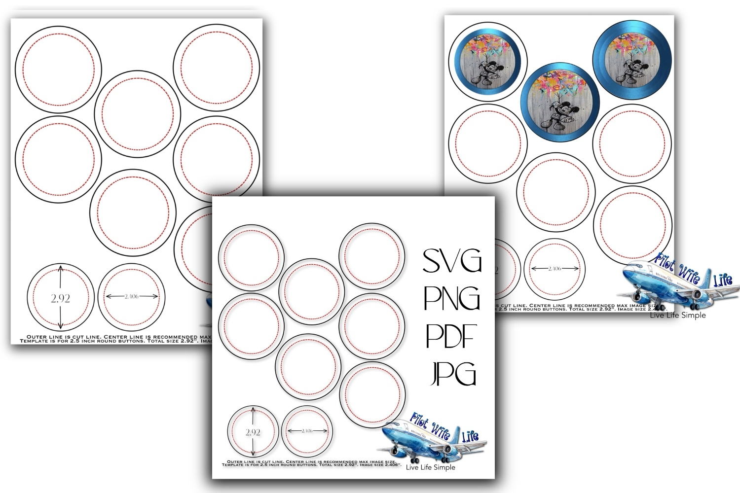 2.50 Inch Button Template Print & Cut Ready 2.92 size example image 1