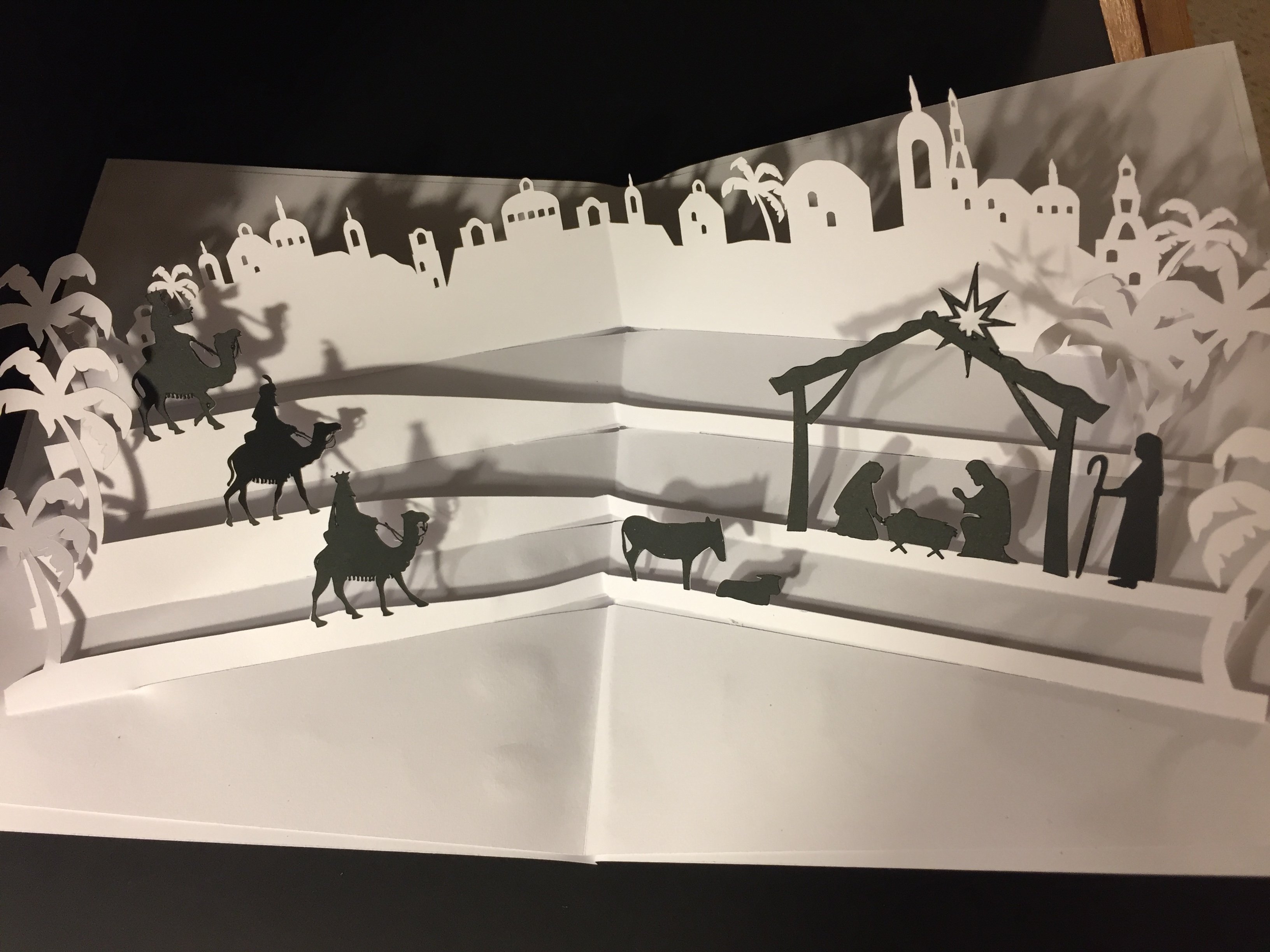 I'm happy with the finished card over all, but not thrilled with the file. First, it came into Design Space at about 13" wide, which I can't cut on my Maker (and I don't have a bunch of 24" paper sitting around to do it the other direction). I had to size it down to work on my 12x12 mat and paper - which made the super fine details just unworkable. The camel reins are literally hair-thing and broke every time. It did cut better the second time using cheap card stock instead of my good AC Cardstock . . . but the super fine details still can't hold up. Also, the palm trees stick out of the sides of the finished card when folded, and the very detailed elements get tangled up with each other so that when you open the card they pull on each other - I suspect the folks I'm sending them to (ages 85 and 92) will love them - but likely tear the detailed pieces getting the card open . . . Some instructions would have been awfully nice too! The pdf is not instructions.