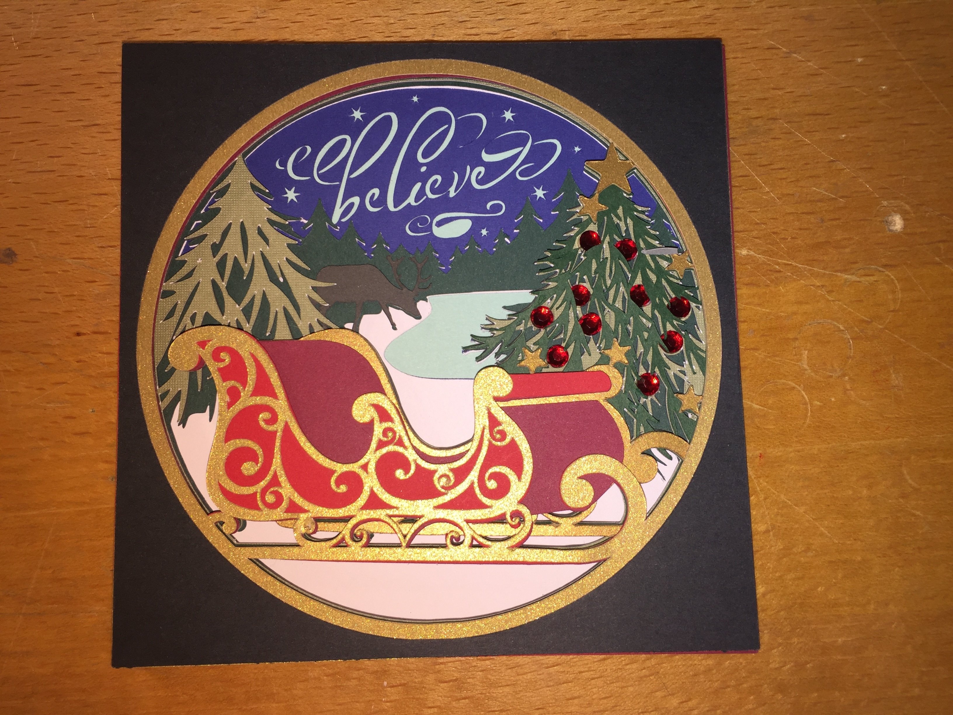 I love this file - I love the sense of perspective the designer has given it, the feeling that the sleigh is just right there, coming at you with the details (like the deer) in the background. I used this file to make a layered Christmas card and it came out beautifully.