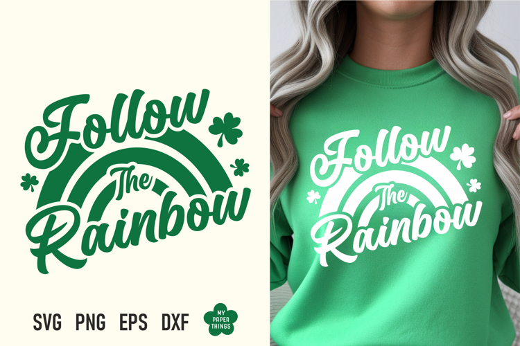 This St Patricks day Follow the Rainbow Svg Png is great for creating wonderful T-shirts, hoodies, tote bags, mugs, tumblers, decorations, stickers