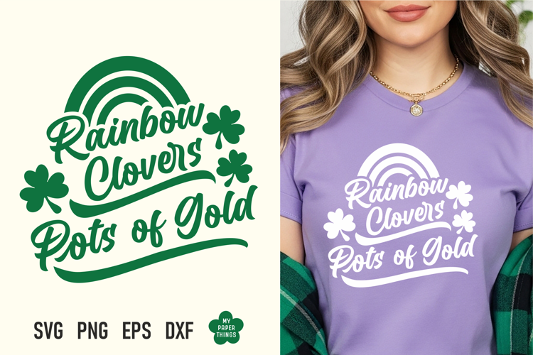 This St Patricks day Rainbow Clovers Pot of Gold Svg Png is great for creating wonderful T-shirts, hoodies, tote bags, mugs, tumblers, decorations, stickers