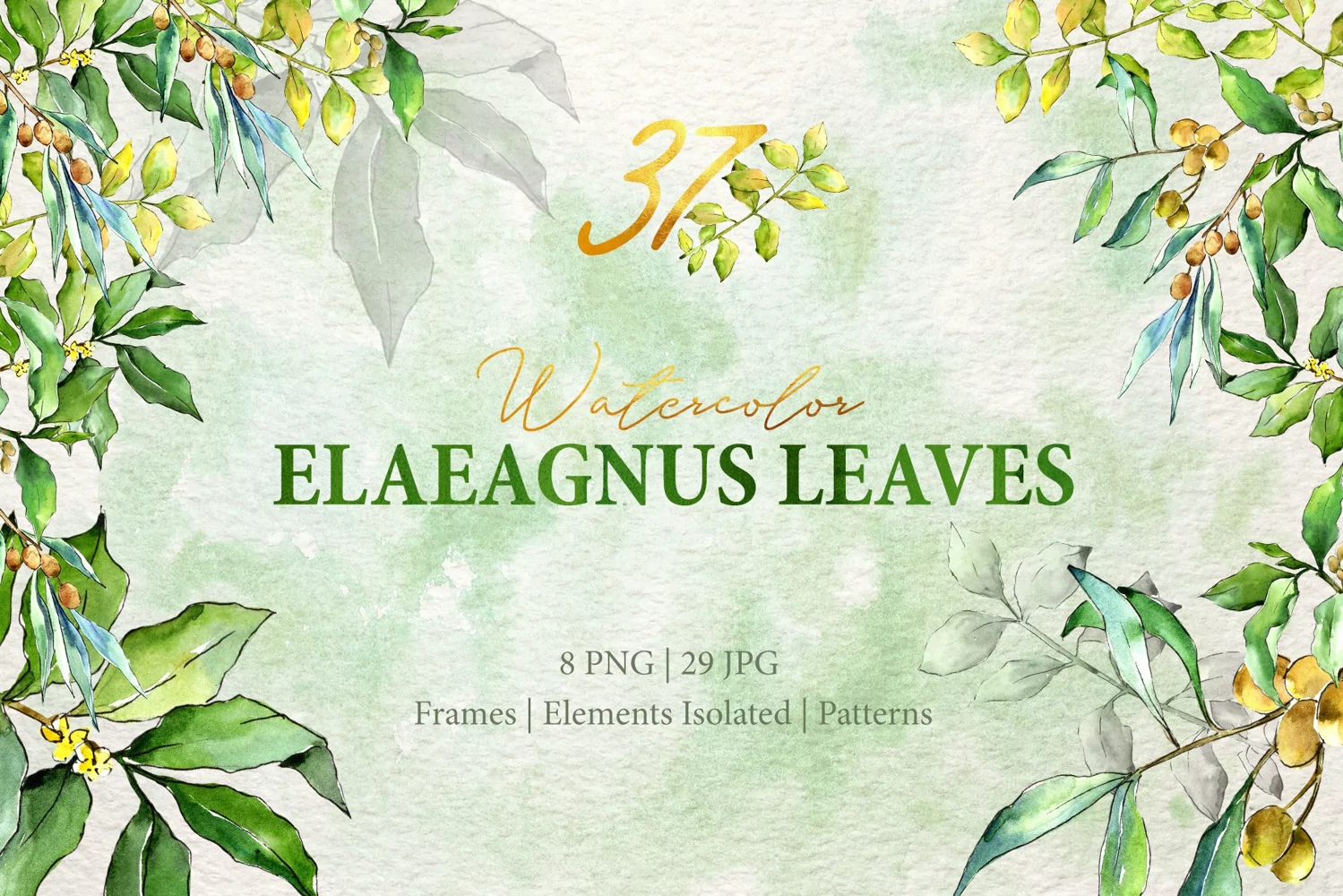 Watercolor Green Elaeagnus leaves PNG clipart of 37files. Ideal material for DIY, wedding invitations, greeting cards, quotes, blogs, posters and more.