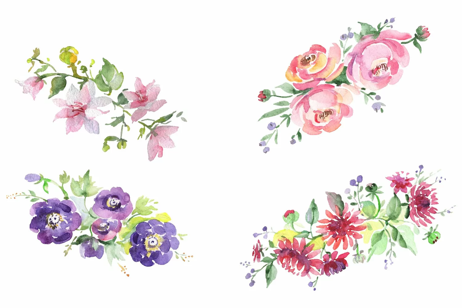 Mars Bouquet Watercolor png clipart of 4 files. Ideal material for DIY, wedding invitations, greeting cards, quotes, blogs, posters and more.