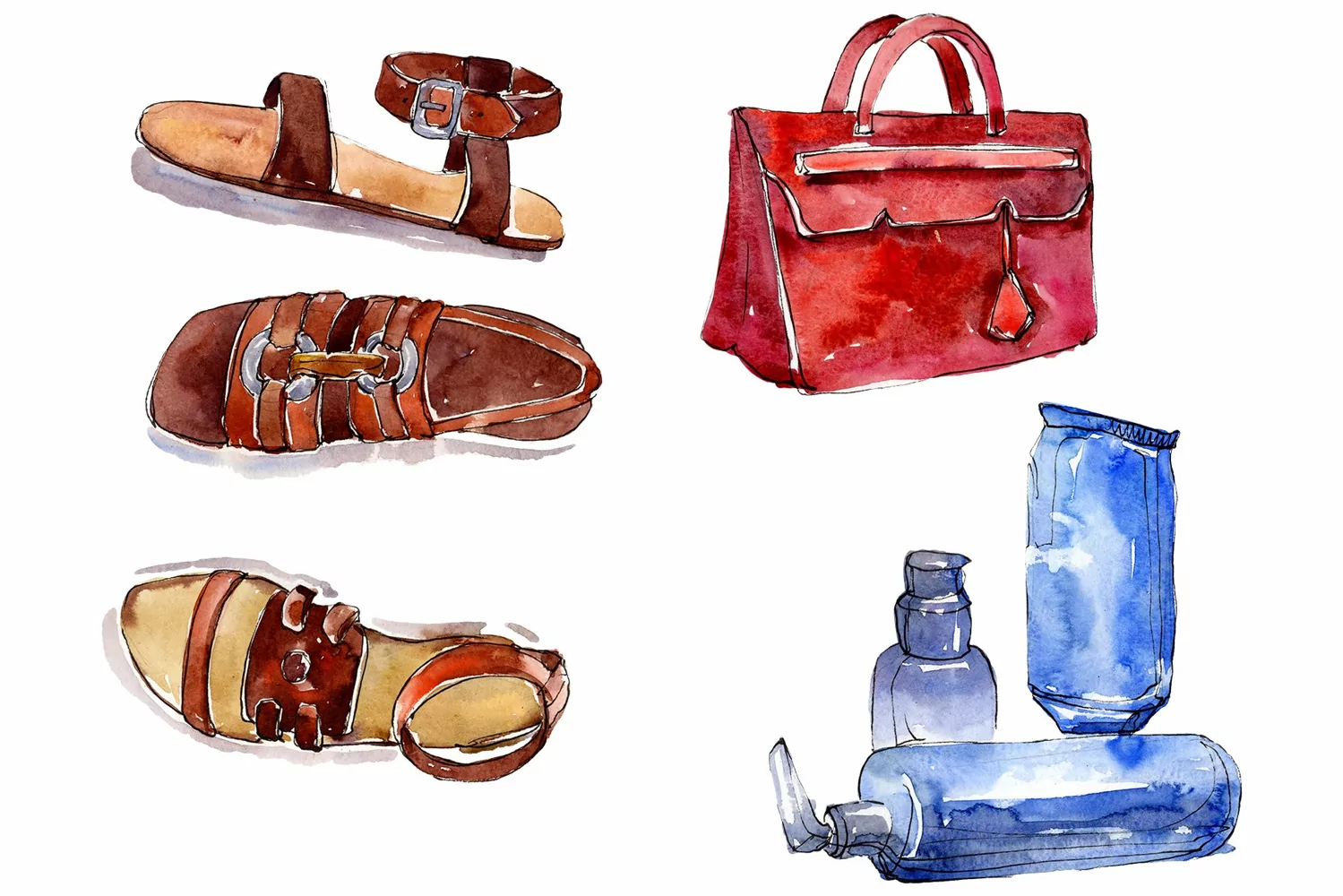 Fashionable set of pretty beauty watercolor png clipart of 5 files. Ideal material for DIY, wedding invitations, greeting cards, quotes, blogs, posters and more.