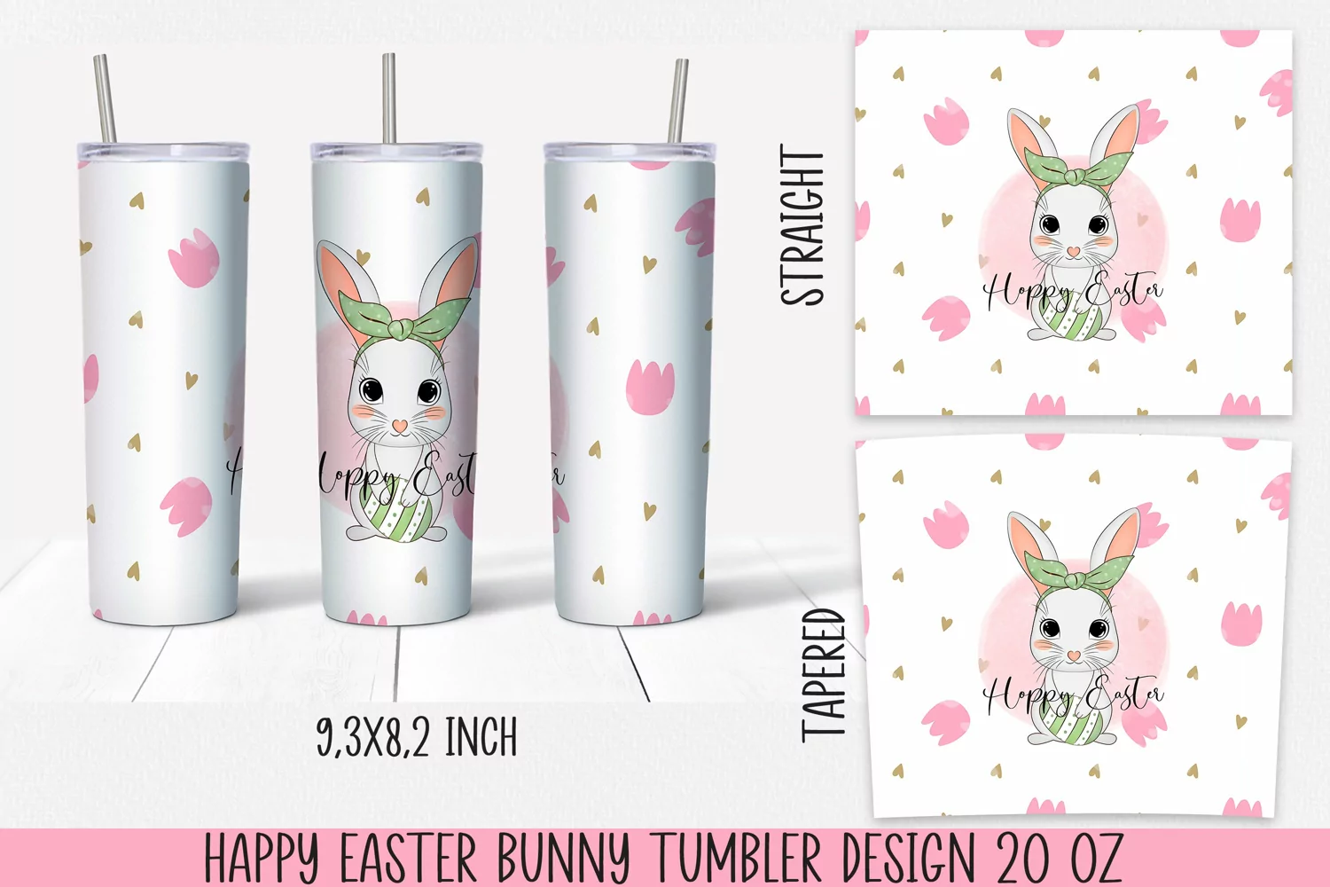 Happy Easter bunny tumbler Sublimation. 20 oz, PNG.