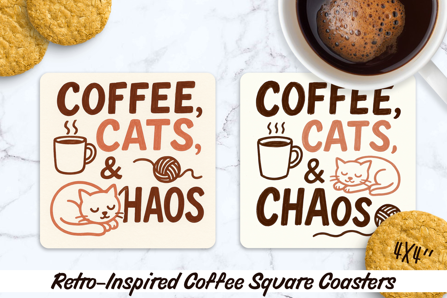 Retro-Inspired Style Coffee Square Coasters. Sublimation PNG
