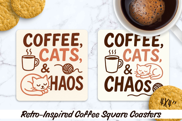 Similar Design Products to Retro-Inspired Style Coffee Square Coasters. Sublimation PNG