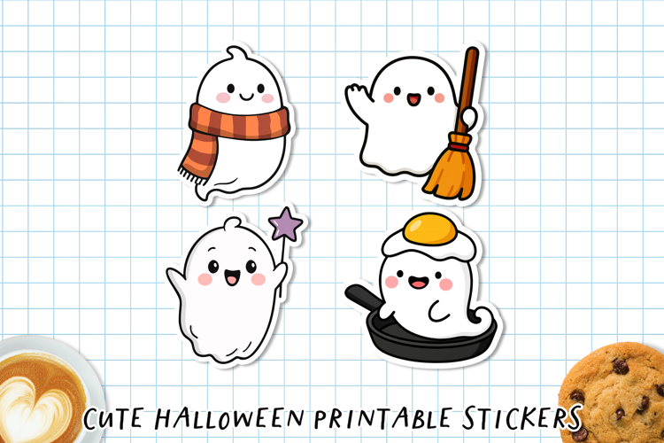 Cute Halloween Ghost Stickers | Printable Kawaii Spooky PNG