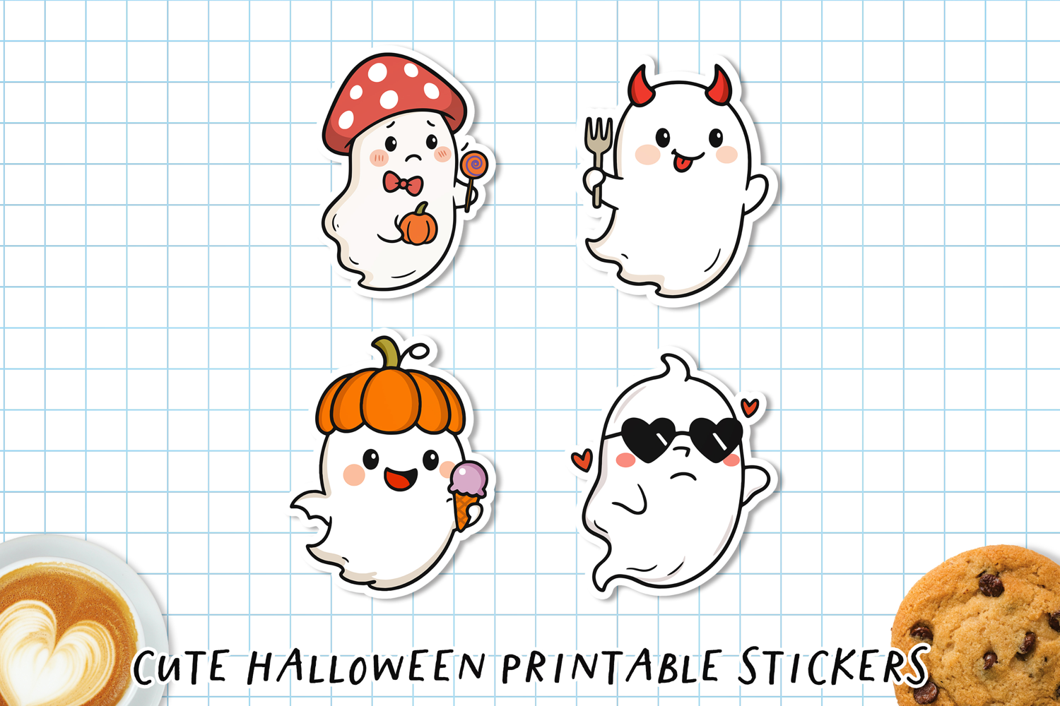 Cute Halloween Ghost Stickers | Printable Kawaii Spooky PNG example image 1