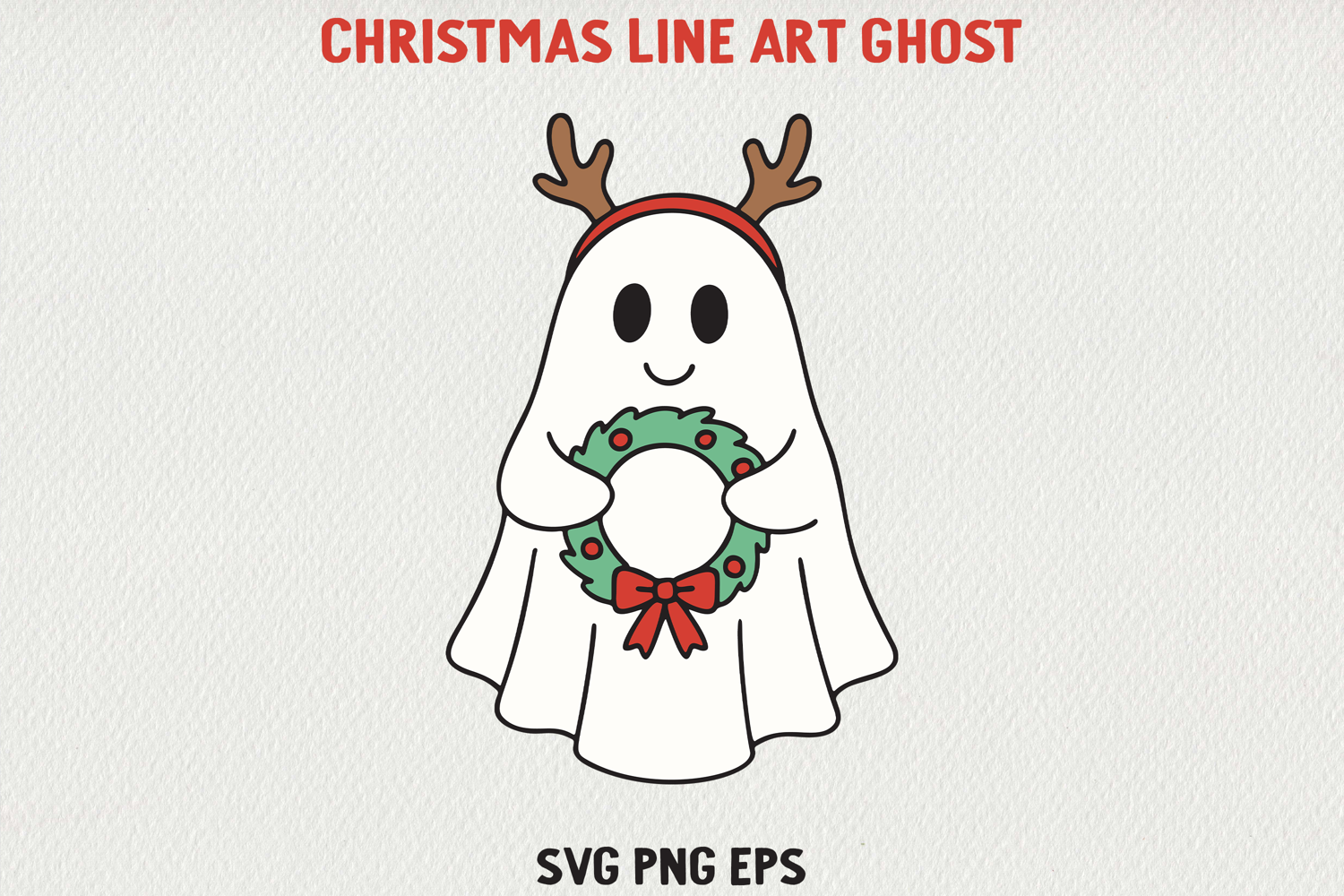 Christmas Kawaii Ghost Minimal Hand-Drawn Clipart EPS, SVG, example image 1