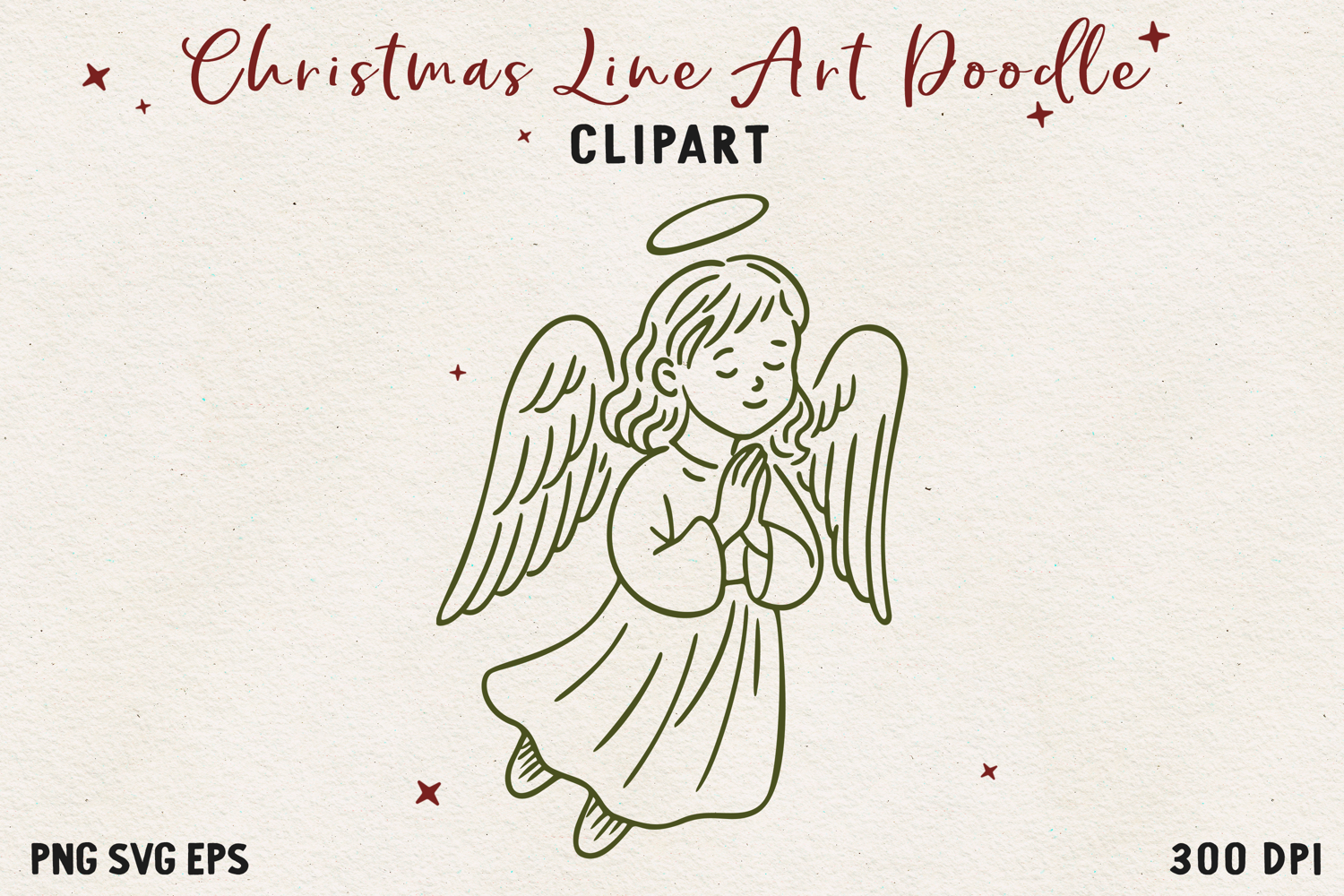 Angel SVG PNG EPS, Vintage Green Line Christmas clipart. example image 1