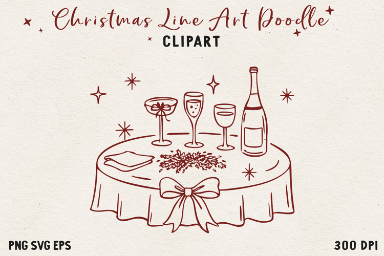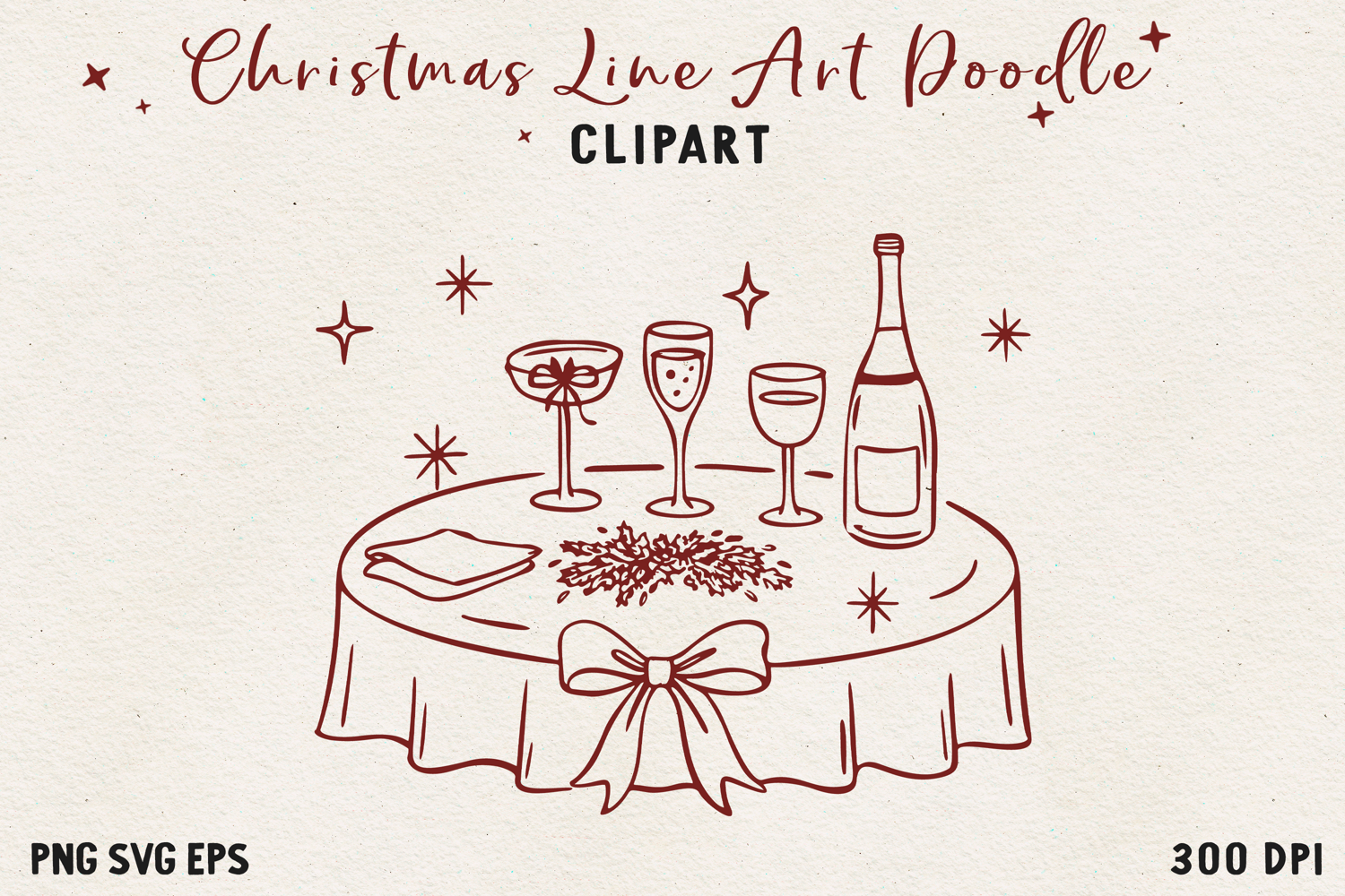 Vintage Hand-Drawn Christmas Illustration| Line Art Clipart example image 1