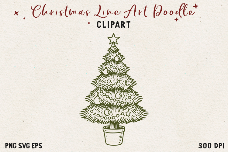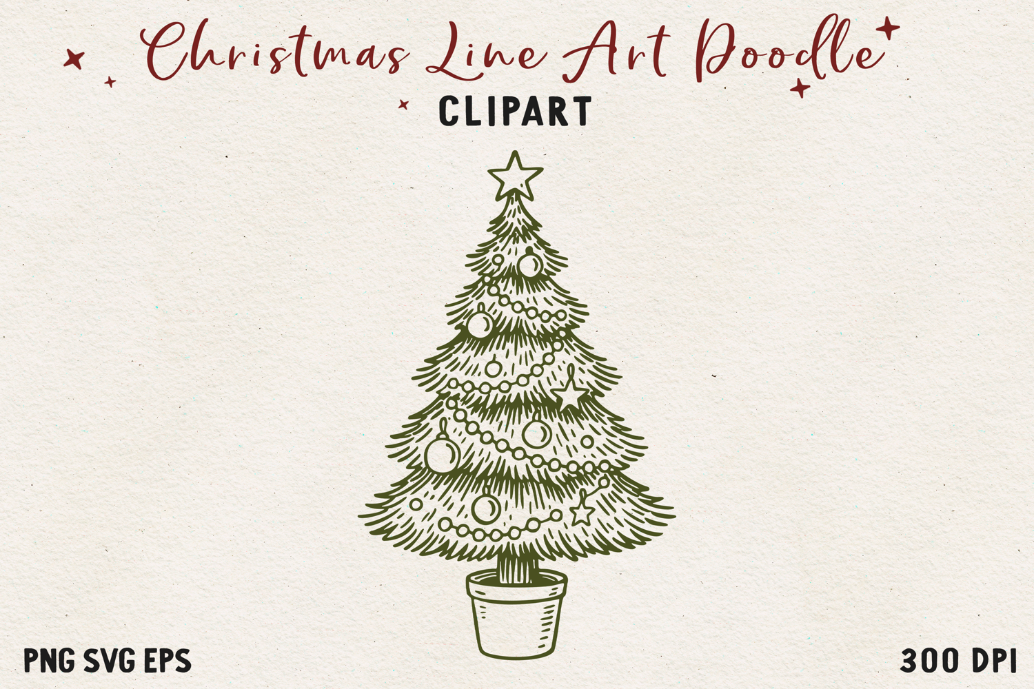 Vintage Hand-Drawn Christmas Illustration| Line Art Clipart example image 1