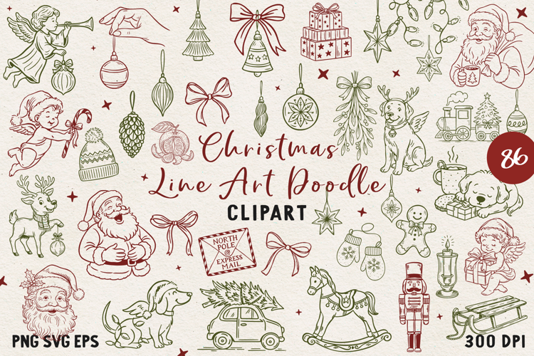Similar Design Products to Vintage Hand-Drawn Christmas Illustrations| Line Art Clipart