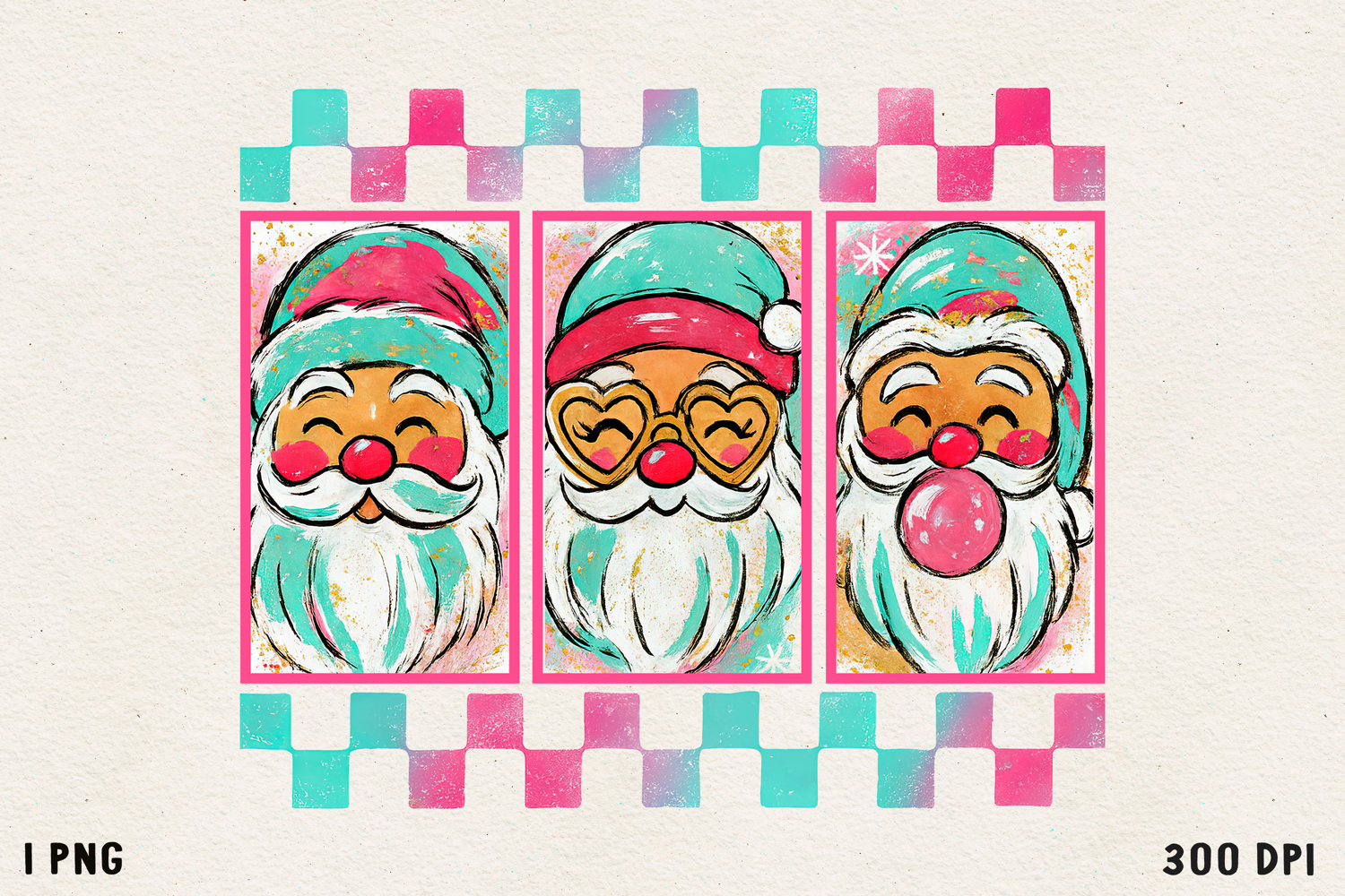 Vintage Christmas Clipart Santa Sublimation Bundle Pink Teal Christmas Png Pastel Christmas Art Retro Santa Trio Png Colorful Santa Faces Funky Holiday Design Cheerful Christmas Illustration Festive Santa Print Trendy Holiday Aesthetic