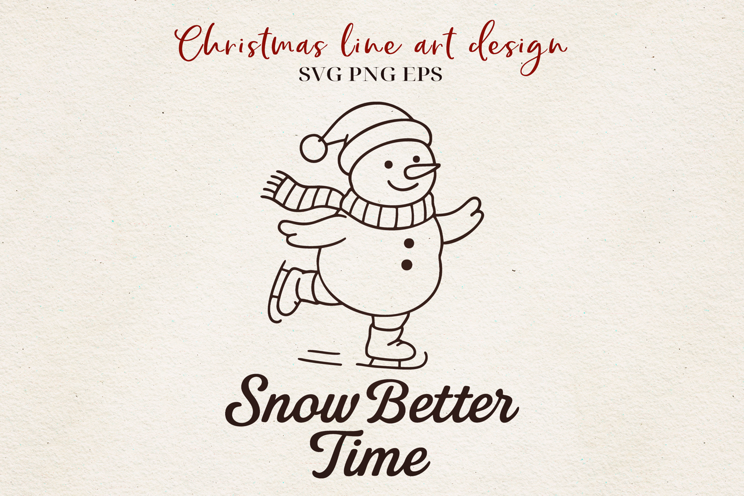 Snow Better Time SVG | Funny Snowman Christmas Line Art | Ice Skating Snowman SVG PNG EPS