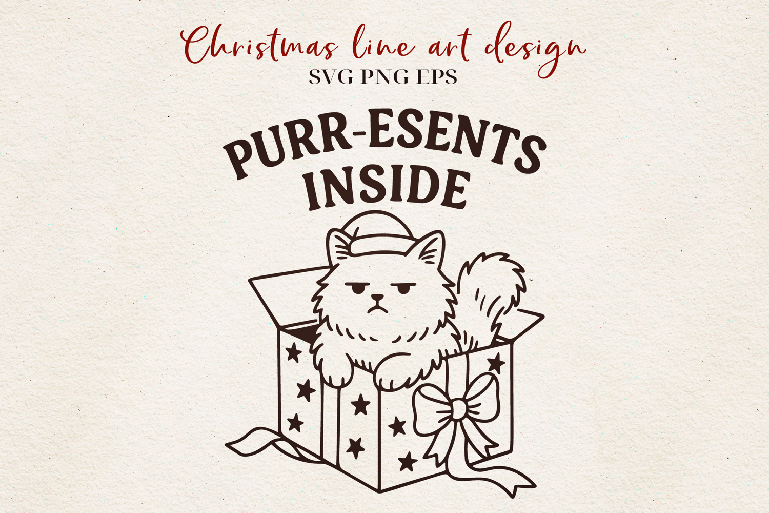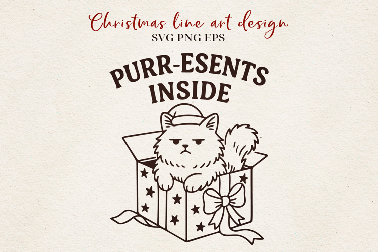 Purr-esents Inside SVG | Funny Christmas Cat Line Art | Grumpy Cat Gift SVG PNG EPS