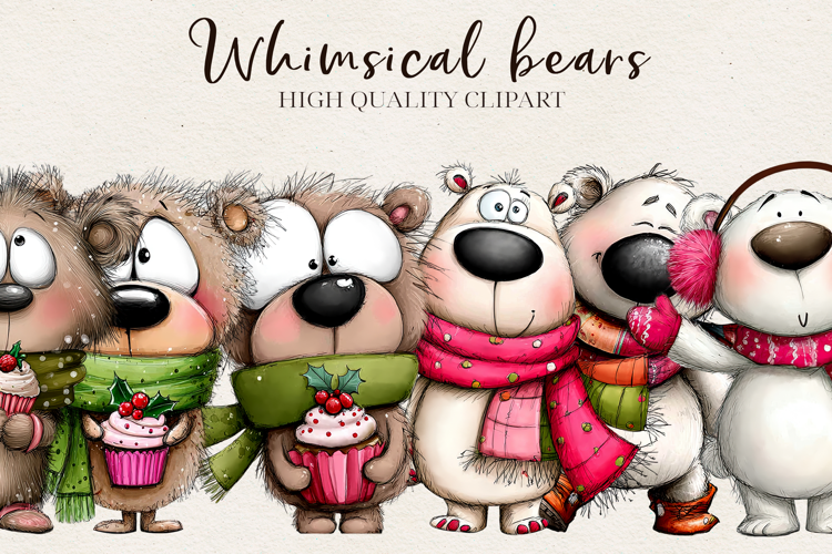 Bring a touch of charm and cozy holiday magic to your creative projects with this Whimsical Bears Clipart!