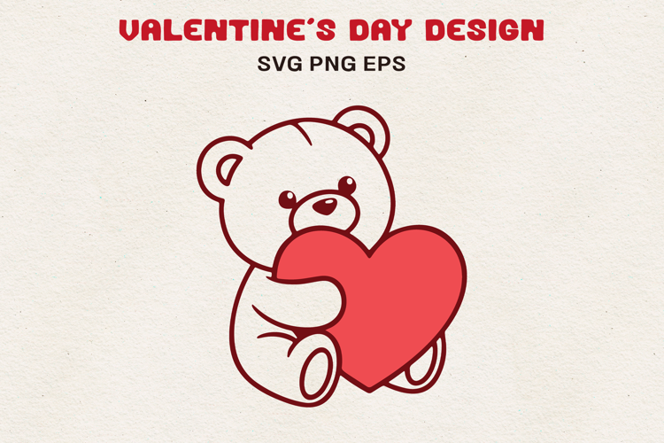 Cute Teddy Bear with Heart – Valentine Bear SVG PNG EPS